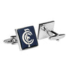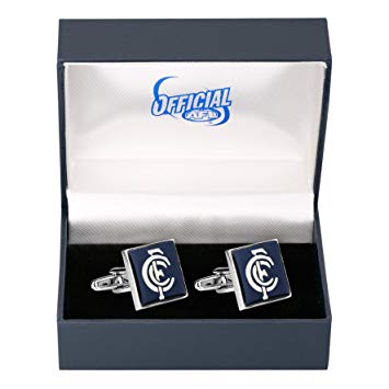 With a record sixteen senior premierships, the Blues are one of the most successful and storied clubs in Australian Football League History. A founding AFL member whose lineage dates back to 1897, the history of the Carlton Football Club speaks for itself. The classic logo of Carlton is embossed in a beautiful silver Rhodium plate finish over a striking enamel background in the unmistakable deep blue of Carlton FC. These officially licensed Australian Football League cufflinks come presented in an appropriately blue gift box and make the perfect gift for the discriminating Carlton supporter in your life!