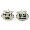 Only 1 left in stock - order soonIntroducing our Estate Agent Cufflinks, the perfect accessory for the distinguished professional in the real estate industry. These cufflinks feature white oval cufflinks with "Trust Me" on one cuff and "I'm an Estate Agent" on the other. Whether you're closing deals, attending property viewings, or networking at industry events, these cufflinks are sure to make a statement.