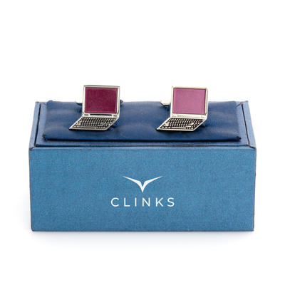 Laptop Computer Cufflinks. Whether you're a social media mogul, a software developer or you're attending a tech convention these laptop cufflinks are where it's at. These Laptop Computer Cufflinks are highly detailed and have a vibrant purple colour that looks nice with dark or white shirts. They're hilarious, but still quite stylish! Can be worn on ANY dress shirt with Shirt Cuff Adapter.