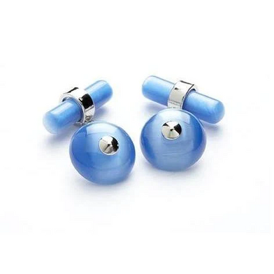 Only 1 left in stock - order soonThis pair of chain-fitting cufflinks feature a blue Catseye button with a silver colour, finished in high-quality rhodium plating. Whether accentuating a formal ensemble or adding refined detail to your attire, the Oracle Blue Cufflinks with Chain is the epitome of refined style, making a statement that is both classic and cutting-edge.