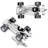 A pair of silver cufflinks made from super-strong material guaranteed to last for years. These Silver F1 Cufflinks with Gunmetal Wheels can be worn on ANY dress shirt with Shirt Cuff Adapters. Excellent addition to your unique cufflink collection and can be a perfect gift- be it for weddings, birthdays or business gifts. Make these novelty cufflinks yours today and be ready to turn heads whilst wearing one.